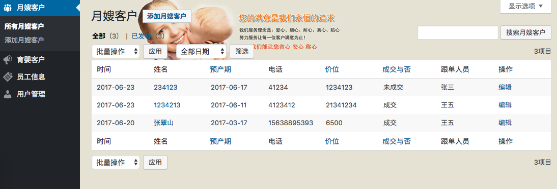 After receiving a requirement introduced by a friend, I developed aSimple CRM application, the demand was put forward by a confinement nanny (nanny) intermediary company. It is mainly used to manage customers and confinement nanny, record communication records between company customer service personnel and customers, manage confinement nanny, and record confinement nanny’s service customer records. After receiving the demand, the first judgment was that the Laravel framework should be used for development. After careful communication with the customer, I found that the entire CRM system did not have too complicated logic. It mainly recorded information, searched for information, and performed some automated processing based on conditions, so I decided to use WordPress, which I was familiar with, for development.