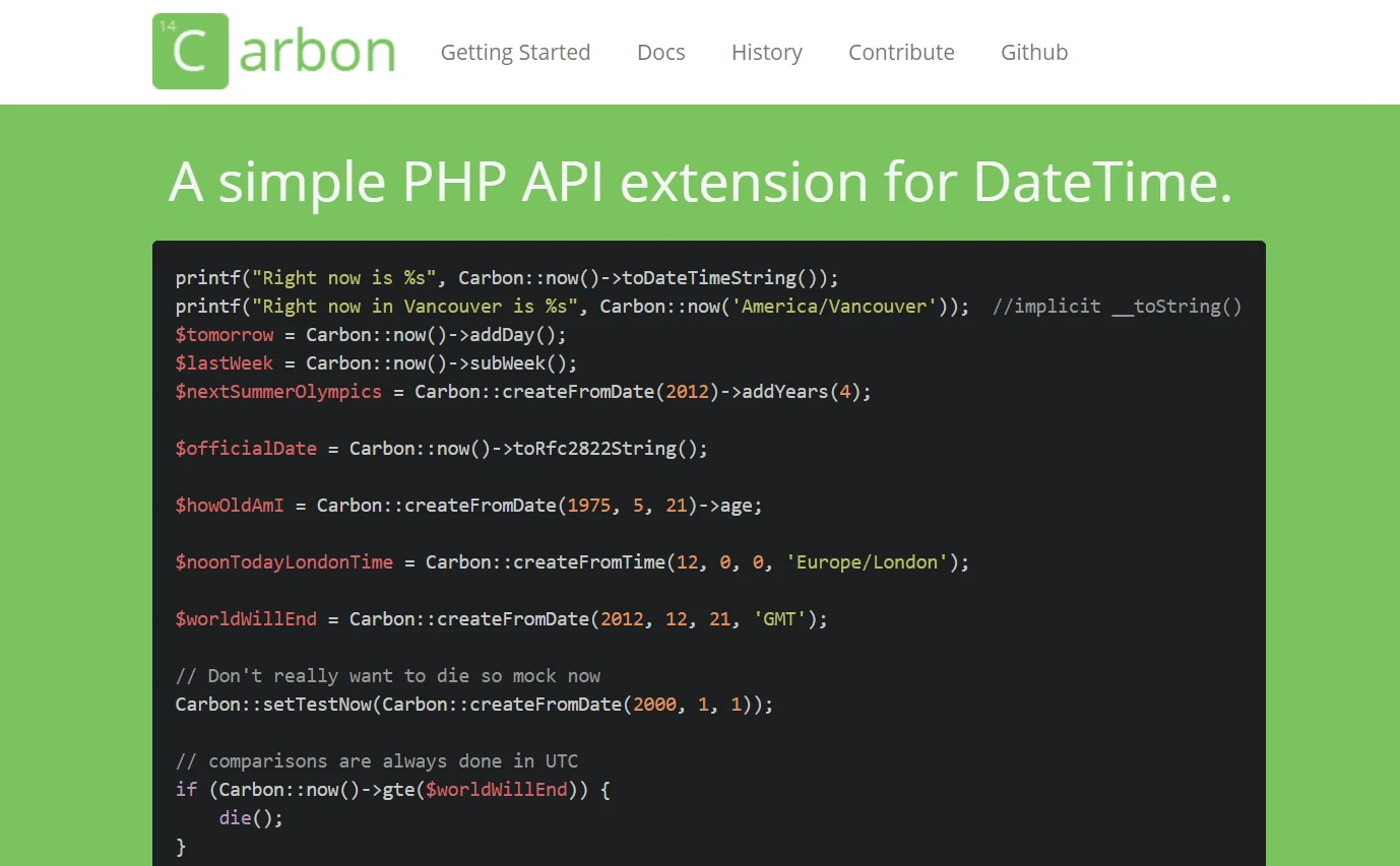 在 PHP 中处理时间是麻烦的,特别是涉及到时间格式转化,时区转换,时间对比等功能时,本站之前的文章根据文章的新鲜度调整时间的显示方式中,就涉及到了时间处理。有兴趣的朋友可以去看一下实现的代码。为了让日期时间处理变得简单一点,Carbon 日期时间处理库出现了,从此,我们便可以很方便的在 PHP 中处理时间了。